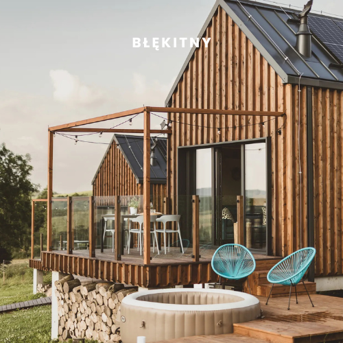Aby nasze domki wpisywały się w regionalny kontekst w ich designie postanowiliśmy nawiązać do największej okolicznej atrakcji przyrodniczej – Kolorowych Jeziorek. W stonowanych wnętrzach pojawia się więc „kropla” koloru. Poszczególnym domkom nadaliśmy nazwy jeziorek, czyli „Zielony”, „Błękitny” i „Purpurowy”.