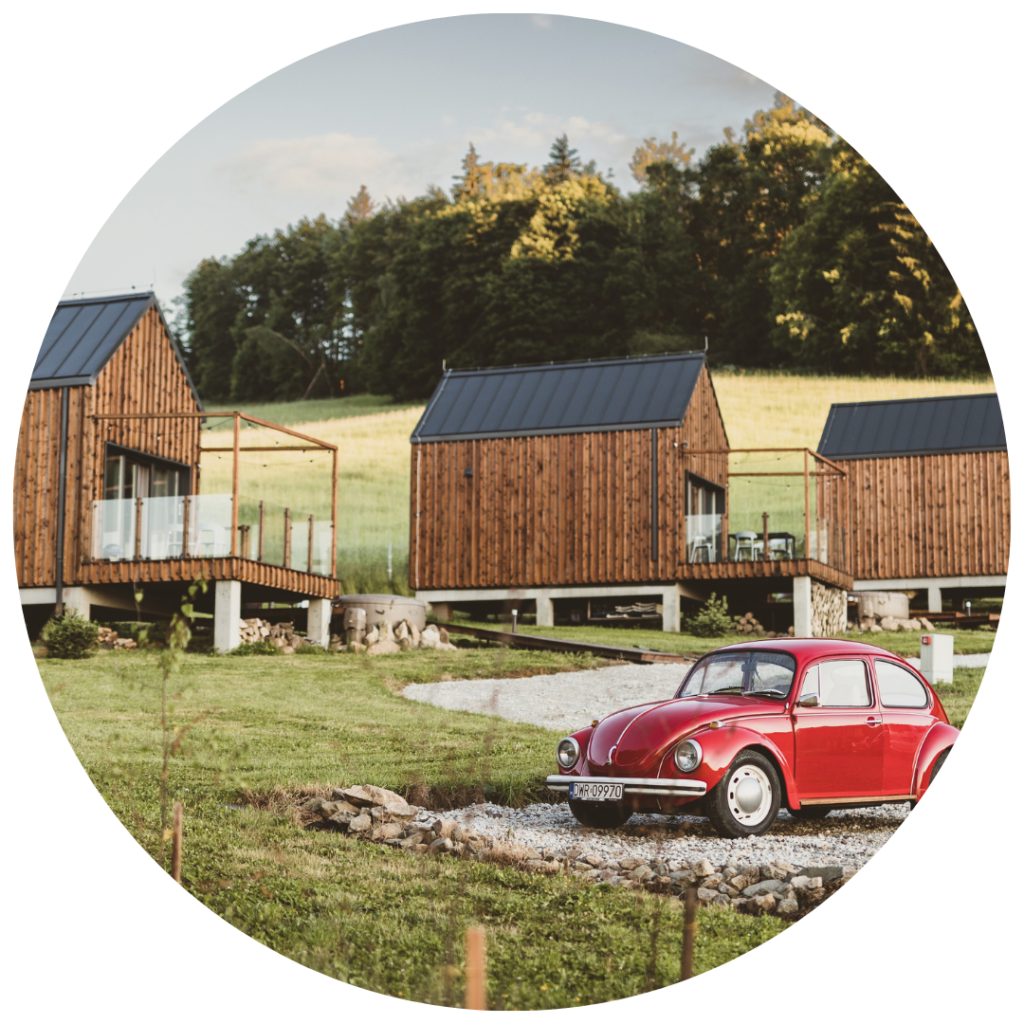 Zostały zaplanowane zgodnie z ideą Tiny House – niewielka, ale bardzo funkcjonalna przestrzeń oraz brak rozpraszaczy w postaci telewizorów sprzyja byciu blisko z osobami, które się kocha oraz obcowaniu z przyrodą. Zamiast TV wszystkie domki posiadają panoramiczne okno z tak cudownym widokiem na góry, że można rozkoszować się nim przez cały rok.